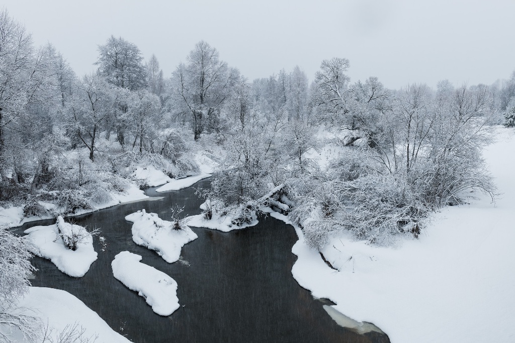 Реки также могут стать для вас интересным объектом для съемки. Особое внимание стоит уделить рекам с перекатами, где даже в сильный мороз вода не покрывается льдом. В особенно холодную погоду такие реки могут эффектно парить, а на прибрежных деревьях может образоваться красивая шуба из инея.