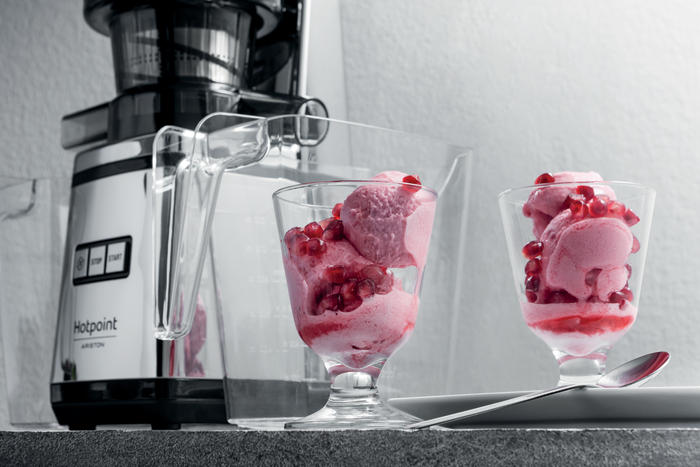 Благодаря новой шнековой соковыжималке можно с легкостью приготовить свежевыжатый сок или ароматный сорбет. Соковыжималка имеет увеличенную загрузочное отверстие размера XL, которое позволяет использовать фрукты или овощи целиком. Благодаря низкой скорости двигателя (менее 50 оборотов в минуту) можно получить до 35% больше сока, чем в традиционной соковыжималке, сохранив питательную ценность продуктов. Любители фруктовых десертов оценят аксессуар для приготовления сорбета. Новая соковыжималка имеет компактные размеры для удобного хранения, её также легко собирать и очистить.
