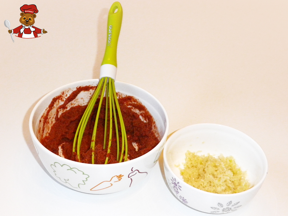 6. Пропустите чеснок через пресс и вмешайте его в маринад №2.