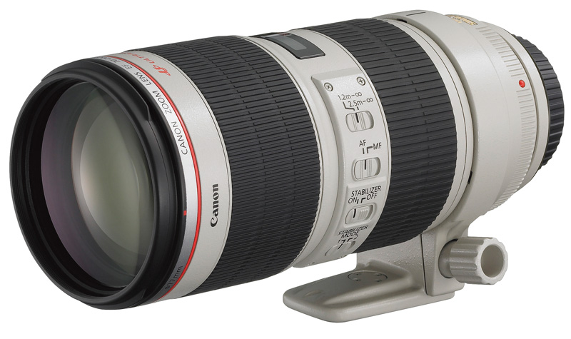 Недавно выпущенная вторая версия самого универсального профессионального зума в линейке Canon, с полностью пересчитанной оптической схемой. Представляет собой оптику нового поколения, предназначенную для работы с матрицами высокого разрешения (объективов такого уровня сейчас на рынке считанные единицы). Измерения показывают, что по качеству изображения Canon EF 24–70/2,8L II превосходит все прочие современные зумы. Обладает исключительно ровным рисунком: все фокусные расстояния, все значения диафрагмы (до f/11) обеспечивают безукоризненное изображение по всему полю кадра. В схеме применены 2 типа асферических линз, а также элементы UD и Super UD.