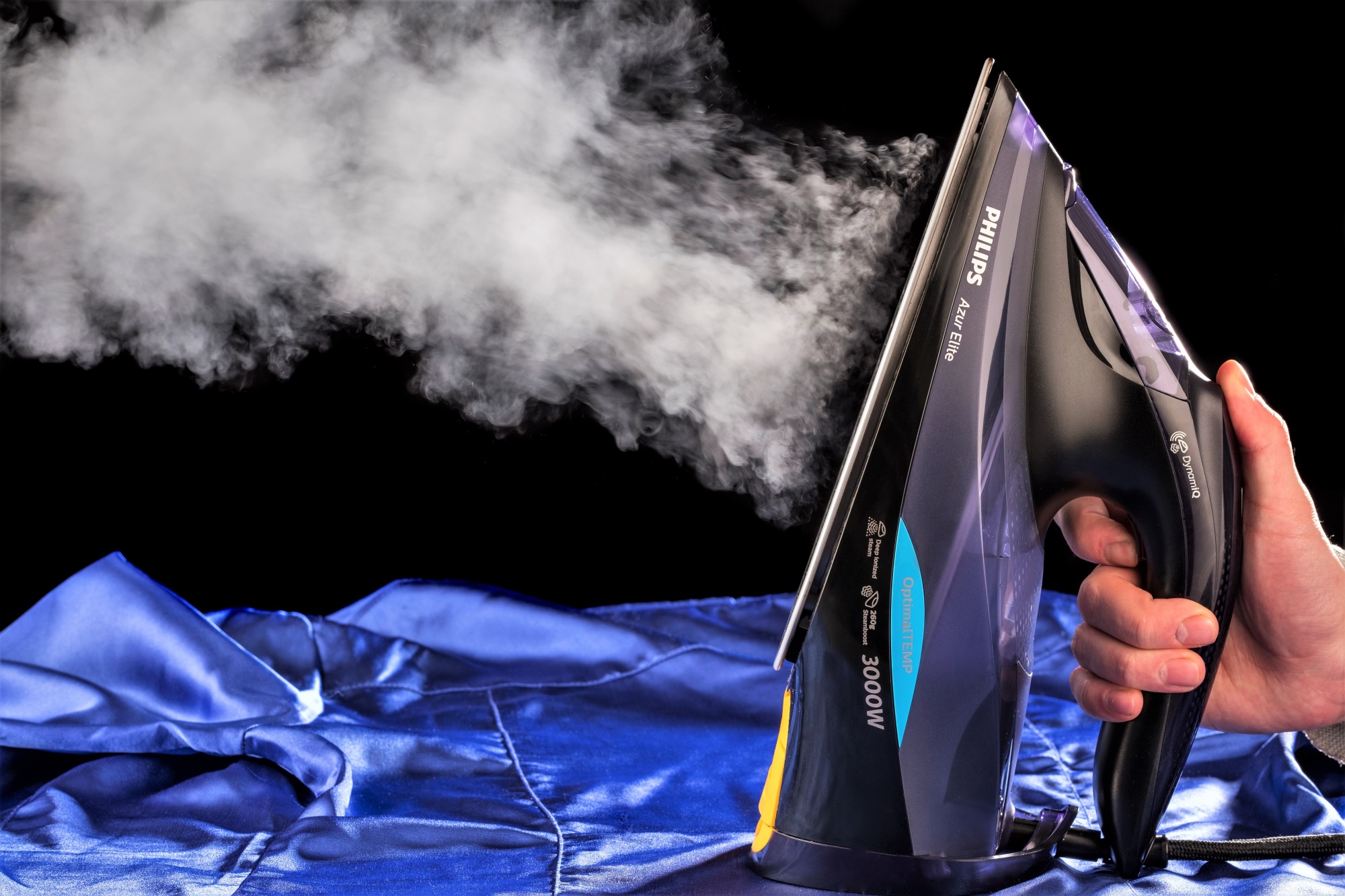 iQ – автоматический режим. В этом случае DynamiQ – специальный датчик точно отслеживает передвижение утюга и обеспечивает подачу пара только при его движениях.