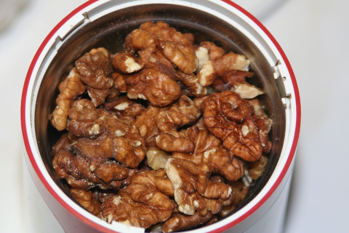 Глубоко вздохнув, насыпала грецкие половинки полную чашу и быстро «задраила» крышку. Через 10 секунд искушение «и так освоить орешки» улетучилось. Кофемолка на третьей секунде свалилась в холостой режим: нож крутился, а орешки ходили поверх нержавейки, как по волнам.