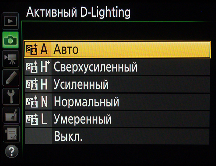 В подавляющем большинстве типичных съемочных ситуаций этого будет достаточно, чтобы все полутона сцены были зафиксированы на снимке. Впрочем, при ночной съемке интенсивно подсвеченных светлых зданий я всё же, на всякий случай, вручную выбирал опцию «Сверхусиленный».