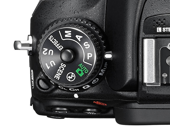 Несмотря на то, что модель Nikon D7200 относится к «кропнутым» любительским зеркальным камерам, по своей конструкции и органам управления она очень похожа на полнокадровые модели 600-й, 700-й и 800-й серий. Но если со стороны задней панели различия минимальны — они выражаются в расположении/наличии всего одной-двух кнопок, то при взгляде сверху становится понятно, кто ближайшие полнокадровые родственники D7200. Это полупрофессиональные D610 и D750 — у них на диске выбора режимов, помимо P/A/S/M, тоже есть позиции и для авторежима, и для сюжетных программ, и для фильтров эффектов.