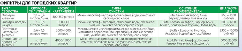В условиях городской квартиры обычно используют фильтры четырех основных типов.