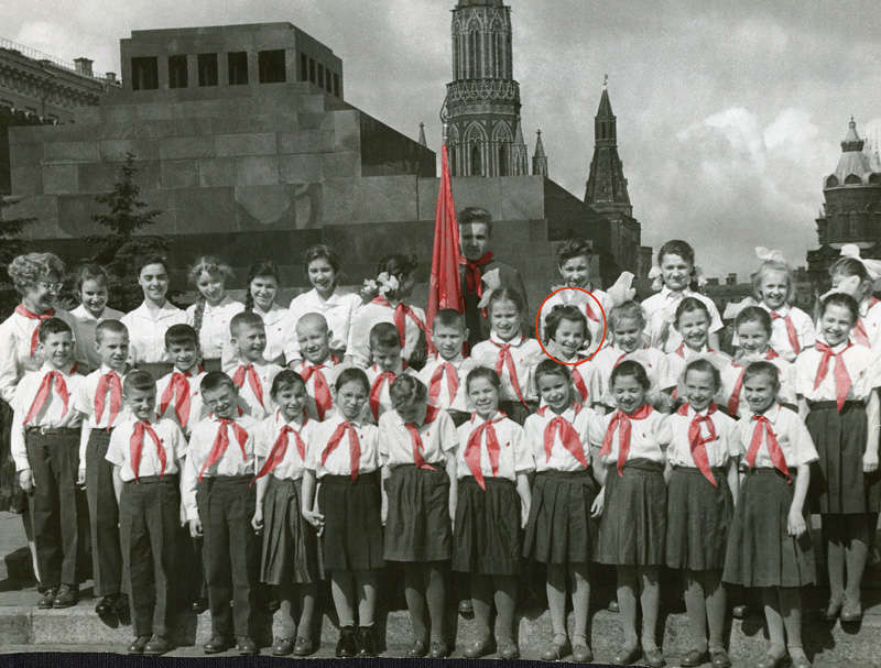 Снимок «Прием в пионеры на Красной площади» изначально черно-белый. Фильм «Броненосец «Потемкин» Сергея Эйзенштейна, вошедший в число лучших фильмов всех времен и народов, и сегодня является для меня источником осмысления, композиционных находок и выразительности, а также живым учебником по компоновке кадра. А исторический факт из истории создания фильма, когда в заключительном эпизоде режиссер самолично кисточками раскрашивал флаг в красный цвет (108 кадров!) отложился в подсознании — и в нужный момент «замкнул» в образную фотографическую ассоциацию. Я тоже раскрасила знамя и пионерские галстуки в красный цвет. И себя отметила красным кружочком. Правда, мне было намного легче, чем Эйзенштейну, поскольку моими кисточками стали инструменты графического редактора Photoshop. Эта изобразительная перекличка с мировым шедевром — тоже своеобразная память о нашей истории. А еще этот снимок пример того, что использование художественной ретуши в документальной фотографии — не дословная «цитата», а скорее пересказ, «перетолкование» увиденного, т. е. авторская трактовка жизненного факта по законам изобразительной композиции, исторического контекста и зрительского восприятия. В этом перерастании отпечатка жизни, натуральной его копии, в суждение и заключена основа превращения документальной фотографии в художественную транскрипцию и изобразительный образ.
