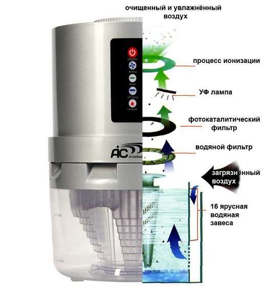 Листаю инструкцию: «Высококачественная очистка и увлажнение воздуха достигается за счёт передовой технологии гидрофильтрации, сепарации, фильтрации, ионизации, УФ и фотокаталитического воздействия» (среднестатистический обыватель, ты что-нибудь понял? я – тоже, но длина написанного внушает священный трепет и уважение).