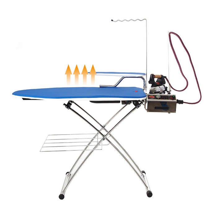 - Функция поддува (базовая функция). Вакуум может обратиться в поддув. Для этого вентилирующее устройство крутится в другом направлении. Преимущества поддува можно оценить при разглаживании материалов с декором и деликатных изделий, которые боятся чересчур горячего прибора. Поддув внедрили многие производители гладильных систем.