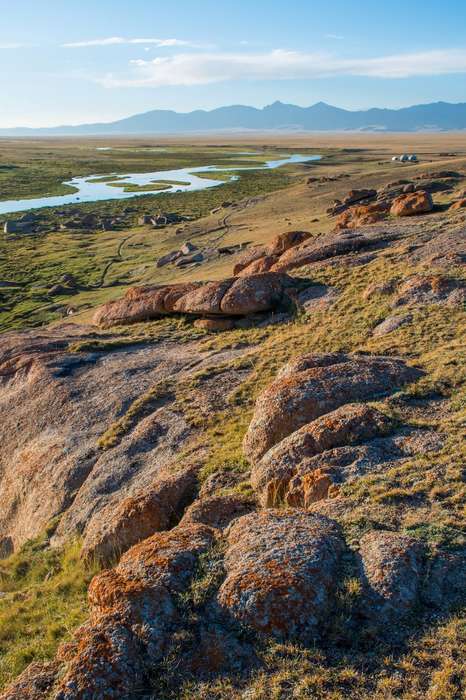 Юрта на предыдущей фотографии находится в центральной части кадра, которую сторонники правила третей называют самой неправильной. “Нельзя ни в коем случае располагать главный объект в центре кадра”. И снова неверно. Центр кадра - мощнейшая точка, надо только грамотно подвести своего зрителя к ней. И это можно сделать массой способов. Например, как на фотографии выше - сделать главный объект контрастным, явно различимым, доминирующим в кадре. Также, его можно поместить в естественный рамки. На предыдущей фотографии такими рамками являются ели слева и справа от юрты, в сверху и снизу склон горы и река.