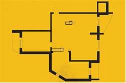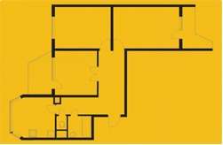 Квартира в московской новостройке. Площадь кухни — порядка 13 кв.м. Вывод канализации и подвод воды — в углу рядом с дверью. По проекту на этой же стене выведен электрокабель для плиты. Отличительная особенность кухни — наличие эркера, для зоны столовой это неплохо, больше объема и света. Дверь на кухню стояла неудачно. За ней остается пространство, которое можно занять мебелью, поэтому ее сняли.