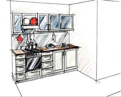 Размещение кухонной мебели возможно только вдоль одной стены. Из-за этого здесь нельзя поставить так любимые покупателями кухни в стиле кантри, для того что бы они выглядели эффектно, нужны яркие элементы: роскошные вытяжки, настольные полочки, витрины — для них нет места. Этим кухням нужен размах, а размахнуться негде.
