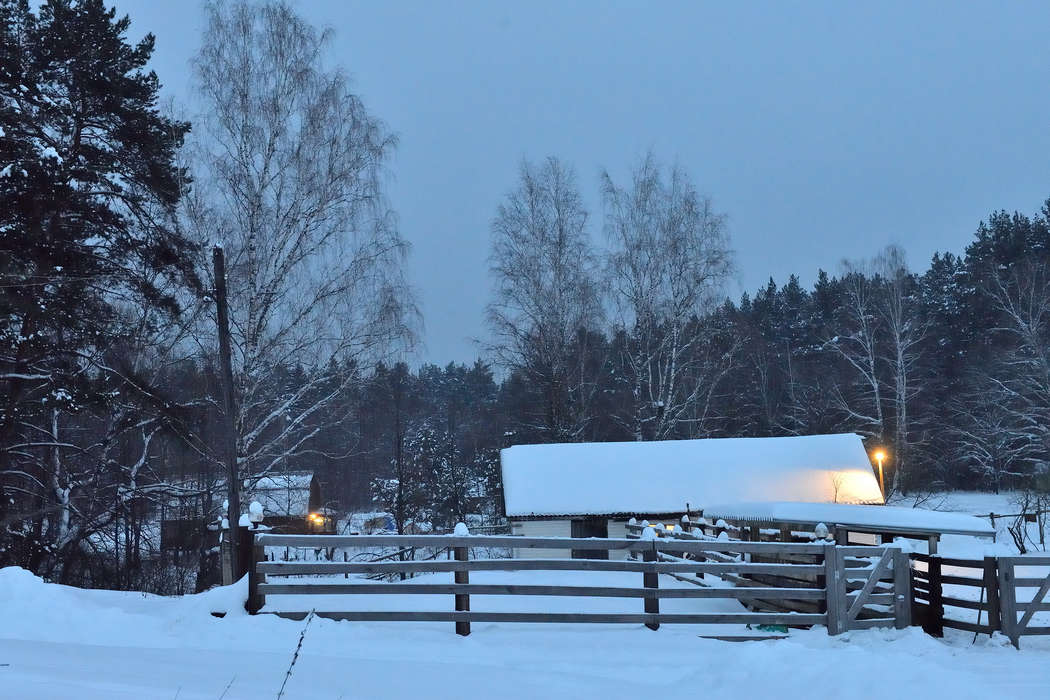 Окружающий лес еще погружен в синеву, которую подчеркивает свет от фонаря. Мне захотелось сделать такой снимок без штатива для того, чтобы проверить возможность съемки на высокой чувствительности. Автоматика камеры Nikon D600 старалась сделать из сумрачного утра привычный светлый день, поэтому для сохранения настроения я ввел коррекцию -1 EV. Широкоугольный зум AF-S Nikkor 24-70 2,8 G в положении 44 мм. Чувствительность ISO 6400, выдержка 1/40 сек, диафрагма f/7,1