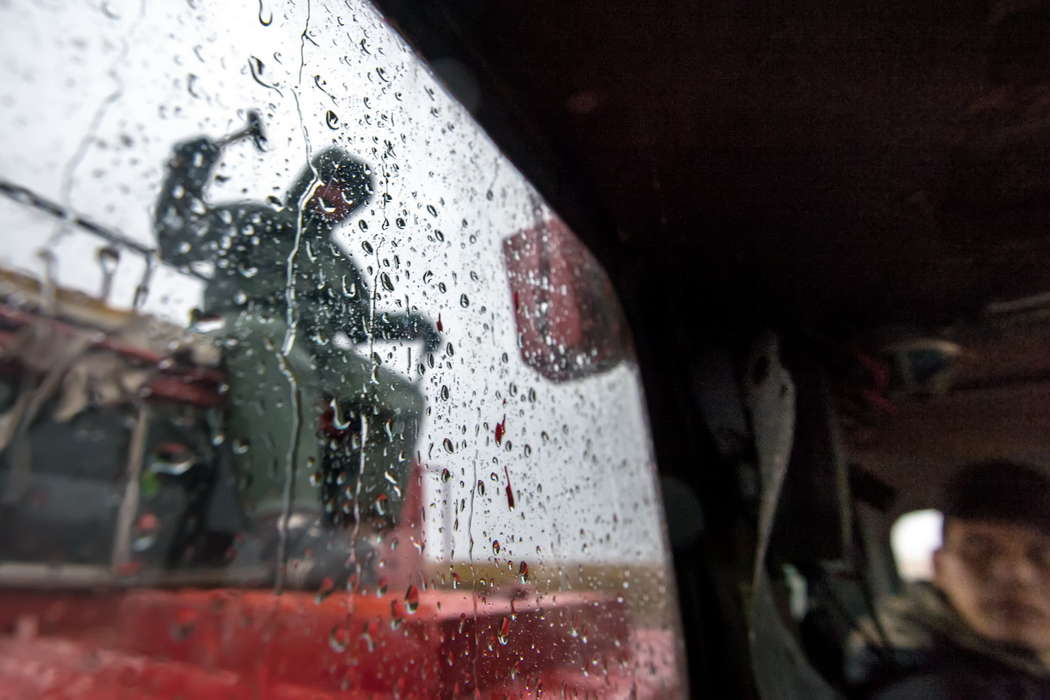 Иногда странные детали и изображения теней и силуэтов могут оживить рассказ, дополнить реалистичные резкие картинки своей непонятной на первый взгляд атмосферой. Капли воды на стекле вездехода, будь они получены при помощи стандартного или макро-объектива, не дали бы представления о заднем плане, где четко можно прочитать силуэт человека. Возможно, такой кадр в контексте истории имеет право на жизнь.