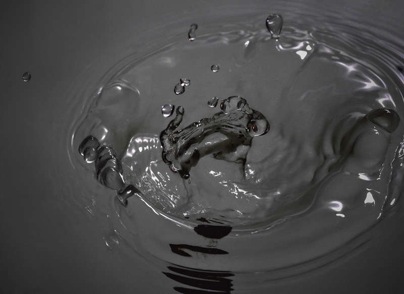 Задержка срабатывания регулировалась, и я без всяких сложностей снимал именно ту фазу падения железки в воду, которая меня интересовала. Выдержка затвора камеры — 1 секунда. За это время я успевал бросить болт, а вспышка сработать. Ведущая лампа моноблока выключена, чтобы не влиять на изображение, а для ориентации в ванной горел маленький фонарик. Водяной — результат падения в воду болта диаметром 6 мм.