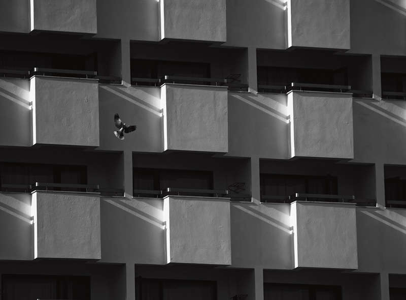 Взлетающий голубь нарушил ритм светотеневого рисунка в кадре.