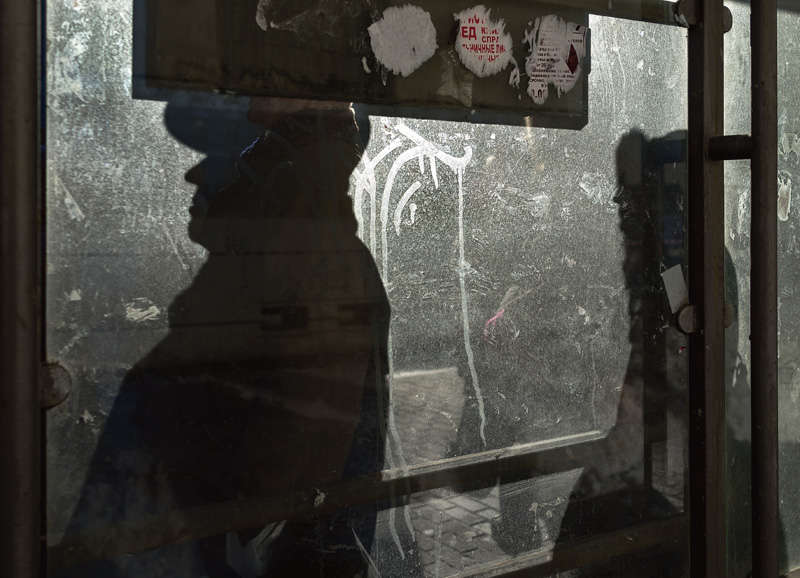Тестируя новенькую камеру с превосходным объективом, я испытывал ее на самых сложных, с технической точки зрения, сюжетах. В данном случае контровое освещение могло бы вызвать появление паразитных засветок, хроматических аберраций, провалов в светах или тенях, потерю цвета на остатках сорванного объявления в верхней части кадра. Но камера отлично справилась с трудностями. Грязное стекло превратилось в изумительный по красоте светлый фон, словно покрытый изморозью. Люди за стеклом — в артистов театра теней. Красные буковки на рекламной листовке не потеряли яркости и насыщенности цвета. О выделении главного снова позаботилось солнце.