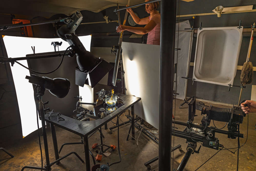 Скорость выполнения заказа обусловлена в первую очередь технической оснащенностью. А для этого в процессе работы фотограф должен обеспечить стопроцентную повторяемость съемки предметов, находящихся в кадре, за исключением тех, которые по сценарию могут двигаться. Дело в том, что вода, к примеру, всегда преподносит сюрпризы, и повторить кадр с движущейся водой — немыслимо трудная задача.