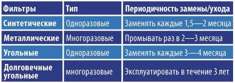 Поэтому производители дают разные рекомендации относительно продолжительности этого срока: Elica каждые 2 месяца, Elikor, Jetair — 3—4 месяца, в зависимости от кулинарной активности хозяйки, Falmec — 4 месяца, Fabriano — 4—6 месяцев, Krona — от 6 до 12 месяцев, Gaggenau — дважды в год, Bosch — 1 раз в год.