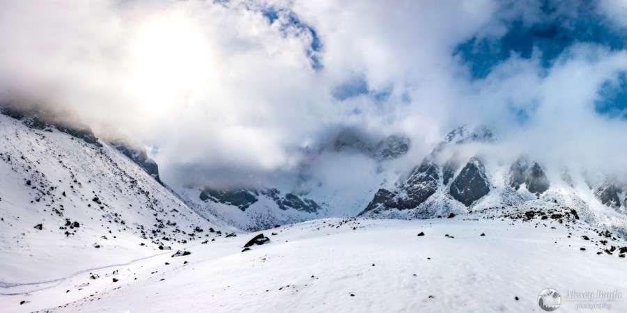 Разница освещения в панораме может быть несколько стопов, и чем больше захватываемый угол, тем больше вариаций освещения может попасть в панораму: от восходящего над горизонтом солнца до неосвещенной расщелины в скале.