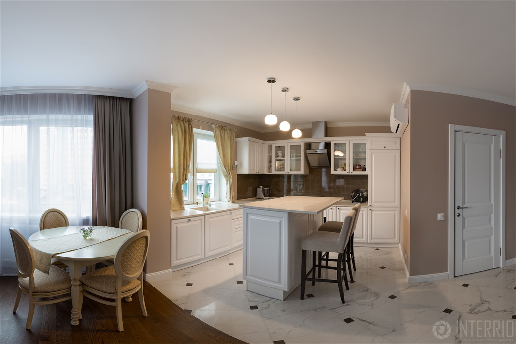 Зачастую, смотря на панорамный интерьер, сложно понять, где начало, а где конец помещения. И в то же время при определенных обстоятельствах, если нет иного выхода, можно получить эффектный ракурс, если сильно не злоупотреблять углом обзора.