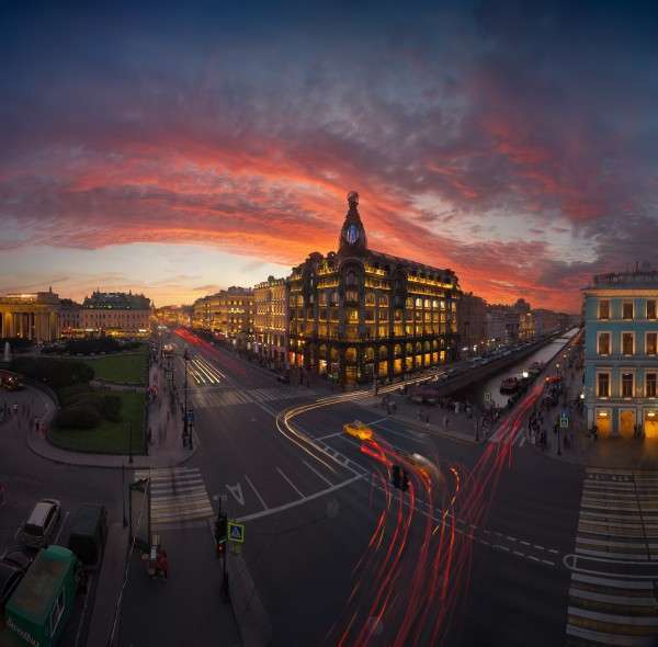 При съемке городских пейзажей панорамная техника нередко используется в сочетании с другими интересными приемами. Съемка композитных изображений — пожалуй, самый распространенный из них. Заключается он в том, что один и тот же ракурс городского пейзажа снимается в разное время дня (сначала, например, вариант с красивым закатным небом, а потом со включенной городской подсветкой и следами от фар), а затем все снимки склеиваются в один кадр, что позволяет взять лучшее от каждого из состояний города. Съемка и обработка таких изображений требуют времени и усилий, однако результат того стоит.