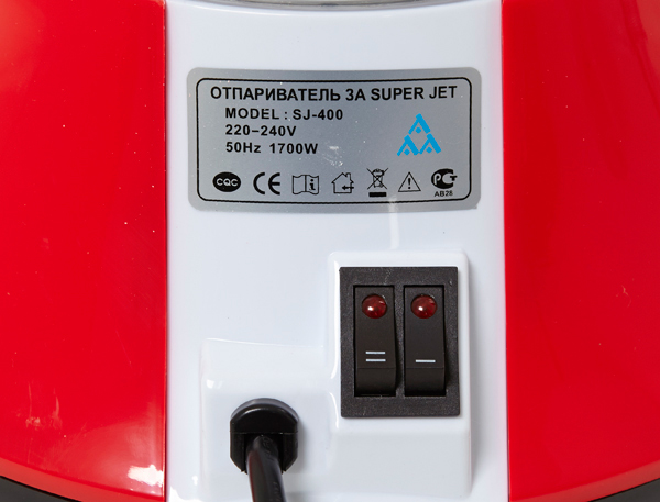 На корпусе 3A SUPER JET SJ-400 расположены два переключателя режимов отпаривания. При нажатии первого переключателя включается минимальный паровой режим (700Вт). Нажатый второй переключатель позволяет работать прибору с мощностью в 1000Вт.