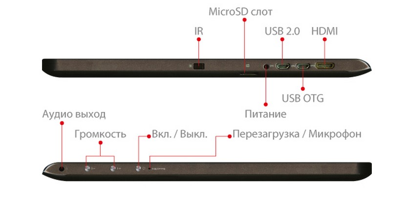 | Разъемы | micro HDMI, microUSB/USB OTG, microSD |