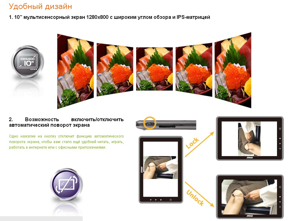 • 10" мультисенсорный экран 1280x800 с широким углом обзора и IPS-матрицей