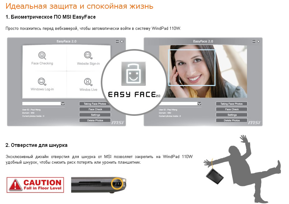 • Биометрическое ПО MSI EasyFace для идеальной защиты и спокойной жизни