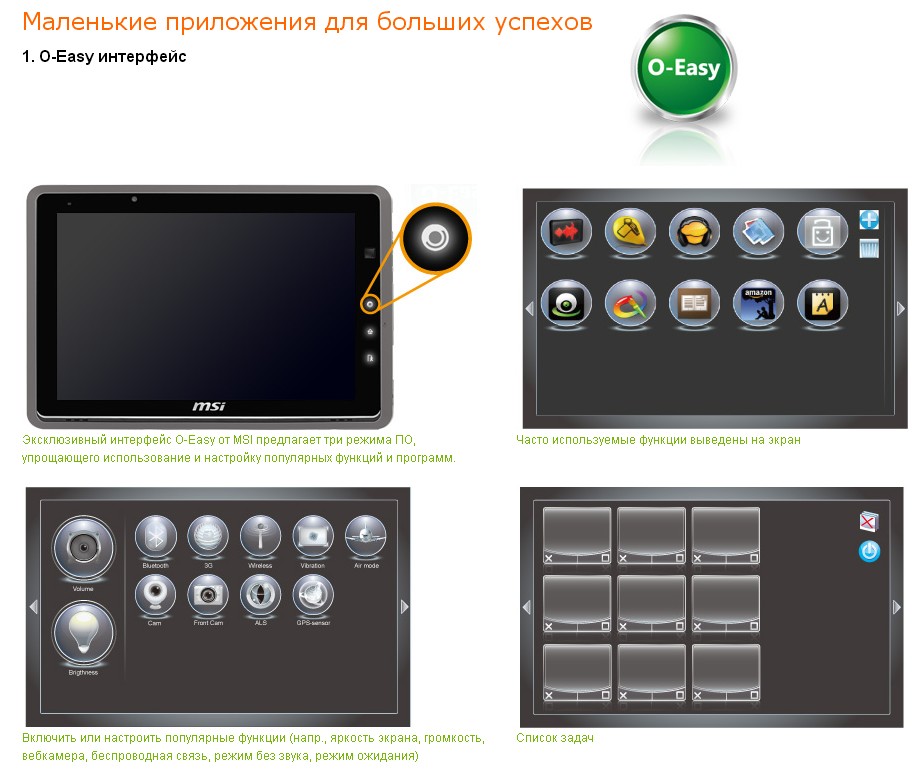 • Эксклюзивный интерфейс O-Easy упрощает использование и настройку популярных функций и программ