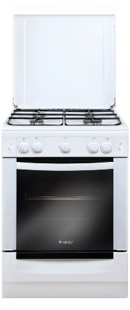 ДУХОВКА: газовая, объем 52 л, макс. t 270 °С, горелка 2,35 кВт; освещение. В духовке установлена большая и мощная донная горелка на 2,35 кВт, которая обеспечивает необходимую температуру приготовления самых разнообразных блюд.