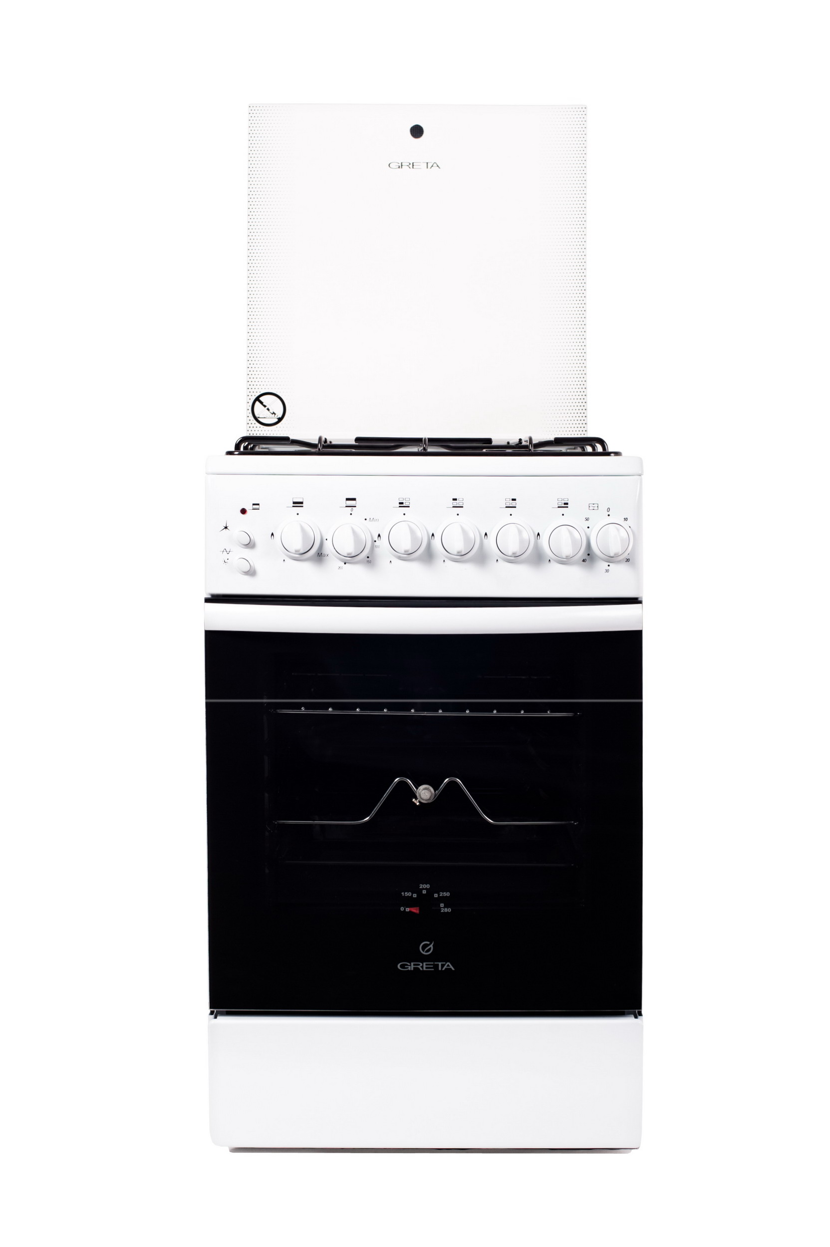 ДУХОВКА: газовая, объем 50 л, мах t 270 °C.