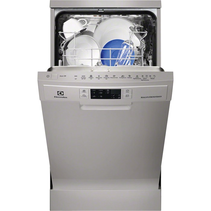 В этой машине можно хорошо вымыть посуду практически любого типа и степени загрязнения. Обычная программа мытья длится чуть больше полутора часов. Если посуда загрязнена не сильно, можно воспользоваться экономичным режимом (вода в этом случае нагреется до 50ºС) или запустить машину в режиме экспресс-мытья, что сэкономит время и электроэнергию. Программа экспресс-мытья «Eat-Load-Run» предназначена для быстрого мытья посуды сразу после использования и с несильным загрязнением. Программа занимает всего 30 минут и позволяет снизить расход воды и электроэнергии. Сушка происходит при помощи естественной циркуляции горячего воздуха, ее эффективность оценена по самому высокому классу.