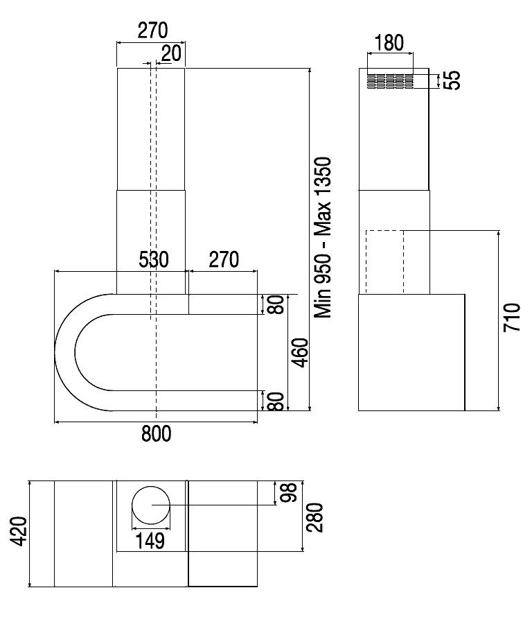 Тип вытяжки - каминный, Установка - пристенная, Max производительность (м3/час) - 1000, Площадь кухни, кв. м. - 45, Потребляемая мощность, Вт - 240, Количество скоростей - 4, Таймер, Материал фильтра - жировой, алюминиевый, Цвет/исполнение - зебра, Вид отделки - панель по периметру, Исполнение отделки - эмаль, Уровень шума, дБ - 54, В x Ш x Г (мм) - 1350 x 590 x 490, Вес - 23