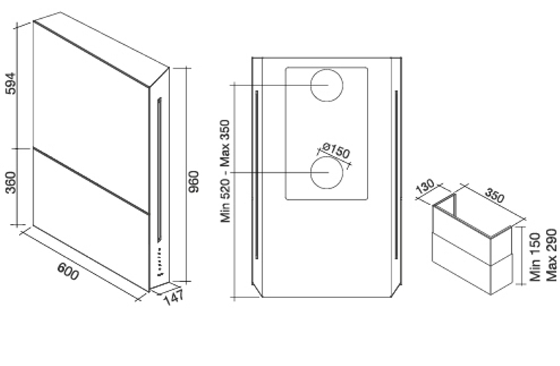 Тип вытяжки - каминный, Установка - пристенная, Max производительность (м3/час) - 750, Потребляемая мощность, Вт - 172, Количество двигателей - 1, Количество скоростей - 3, Максимальное давление, Па - 590, Материал фильтра - нержавеющая сталь, Количество фильтров - 3, Тип фильтра - жировой, угольный, Основной цвет - черный, Уровень шума, дБ - 56, Гарантия - 1 год, В x Ш x Г (мм) - 1450 x 900 x 300, Вес - 36