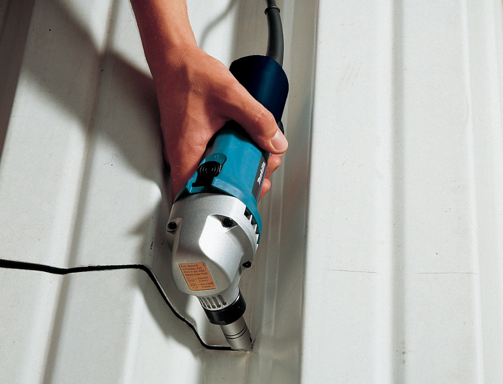 Данная модель предназначена для быстрой и аккуратной резки (прямолинейной и фигурной) листового металла толщиной до 2,5 мм. Конструктивные особенности электрических ножниц позволяют работать не только по ровным поверхностям но и с гофрированным листами разного профиля.