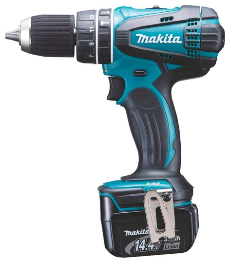 Тип инструмента - ударный, Тип питания - аккумулятор, Тип патрона - быстрозажимной, Количество скоростей - 2, Реверс, Max диаметр сверления (дерево), мм - 65, Max диаметр сверления (металл), мм - 13, Max диаметр сверления (бетон), мм - 14, Основной цвет - синий, Гарантия - 3 года, Вес - 2.3Шуруповерт Makita BHP 456 RFE