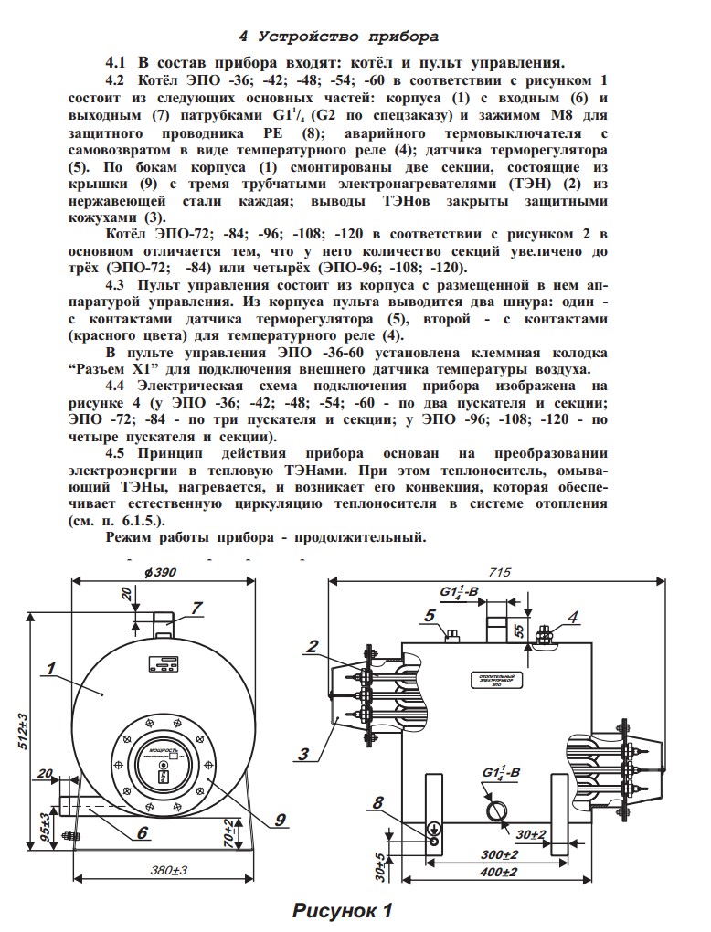 Котел состоит из емкости нагрева с количеством фланцев от 3 до 8, в зависимости от мощности и двух-, трех- или четырехступенчатого пульта управления