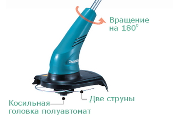Вращение корпуса двигателя и косильной головки до 180 градусов