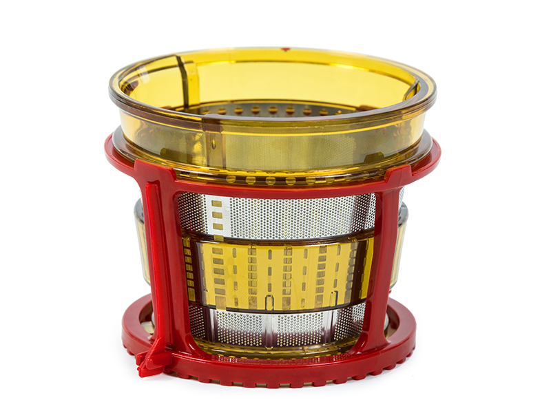 Яркая – это то, что сразу бросается в глаза. Красный металлик, с одной стороны, выделяет эту модель среди конкурентов, с другой – ограничивает ее выбор, ведь не ко всем интерьерам она подойдет. В ассортименте компании есть соковыжималки этой модели более нейтральные по цвету: белая и серая. Они более универсальны, но красная, конечно же, самая шикарная. Модель объединила в себе черты соковыжималок разных лет. Своими размерами и эргономикой она близка со шнековыми приборами, которые появились два-три года назад. А вот противокапельное устройство – признак моделей 2016 года.