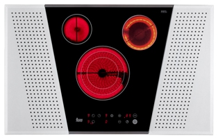 ФУНКЦИОНАЛЬНЫЕ ВОЗМОЖНОСТИ: прибор оборудован тремя конфорками, две из которых элементы Hi-Light, отличающиеся быстрым и равномерным разогревом. Они медленно остывают, поэтому можно использовать тепло для подогрева блюд. Конфорка дальнего ряда справа — галогенная. Она в считанные секунды достигает максимальной температуры, при выключении остывает быстро.