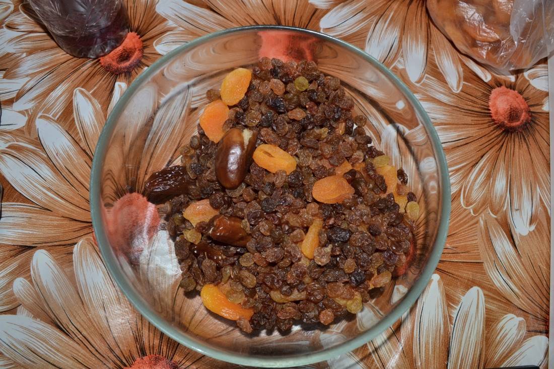 Потребовалось: 200 г кураги, 200 г изюма, 200 г фиников,