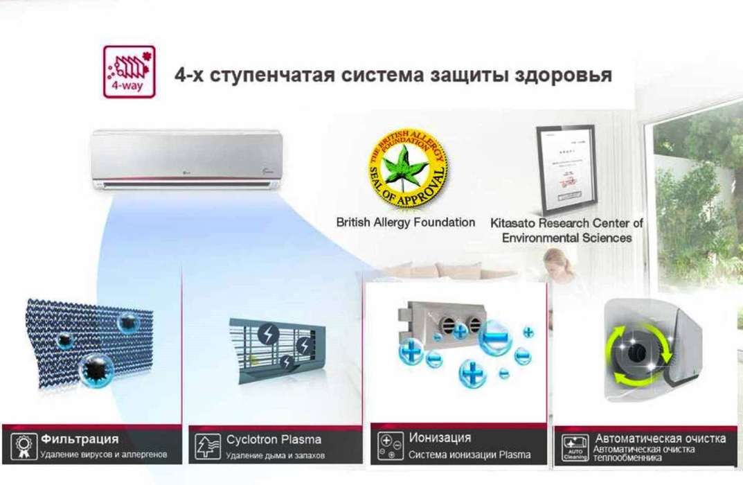 Накопив большой опыт в производстве бытовых кондиционеров, пройдя 50-летний пусть, специалисты компании готовы отвечать за качество аппаратов. LG Electronics имеет собственное производство с проведением полного контроля качества на всех этапах производства. Испытания каждой новой модели проводятся за 2 года до выпуска на рынок в условиях повышенных нагрузок.