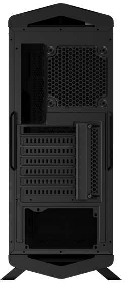 Геймеры давно перестали прятать системные блоки под стол, ведь понятия «вместительный» и «мощный» в их описании больше не означают, что корпус будет массивным и некрасивым. Вот и разработчики из AeroCool решили, что P7-C1 должен выглядеть так, чтобы все друзья владельца тихо завидовали. Корпус выполнен в необычном шестиугольном форм-факторе и стоит на столе на паре длинных ножек, напоминая готовый к взлёту футуристичный космолёт.