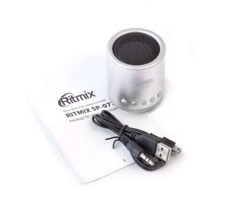 Как говорится в известной русской пословице: мал да удал! Несмотря на небольшой размер Ritmix SP-077 оснащен встроенным FM приёмником.