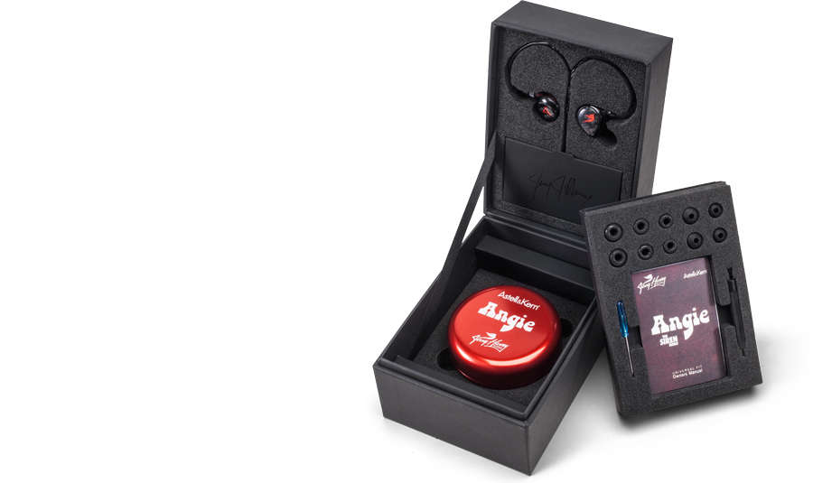 Angie — третья модель в легендарной линейке «Siren Series», названа в честь известной композиции Rolling Stones с одноименным названием. Мик Джаггер и Кит Ричардс записали ее в ноябре-декабре 1972 года. «Angie» — это акустическая гитарная баллада, которая рассказывает об окончании романа. Благодаря меньшему количеству драйверов Angie значительно компактнее и легче, а, следовательно, и комфортнее, чем Layla и Roxanne. Таким образом, Angie является идеальной комбинацией грандиозного звука, комфорта и более доступной цены.