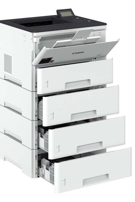 У принтера Canon LBP312x есть одна встроенная кассета для бумаги на 550 листов. Дополнительно можно оборудовать его еще тремя стандартными кассетами такого же объема. Благодаря этому можно не только реже отвлекаться на загрузку новой бумаги, но и параллельно использовать при печати до четырех разных типов бланков и форм.