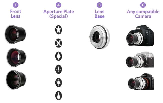 Цена базвого комплекта с тремя сменными линзами, базой и диафрагменными пластинами для камер Nikon, Canon и Pentax составит 990$. Набор также доступен для камер MFT, Fujifilm X и Sony NX, которые работают с адаптерами Nikon F и Canon EF.