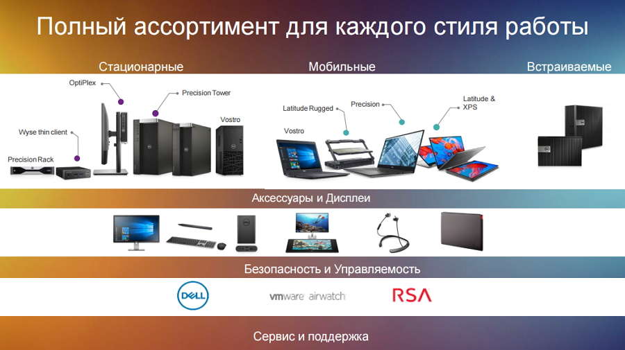 Встроенное ПО Dell Data Security обеспечивает комплексную защиту от угроз, а решение Dell Client Command Suite позволяет быстрее развертывать и конфигурировать системы, а также эффективно и просто управлять ими на протяжении всего их жизненного цикла.