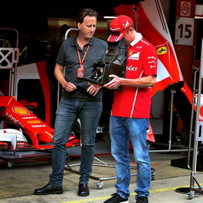 Джошуа Пауль (слева) показывает финскому водителю Кими Райкконену, как использовать свою камеру. Фото Лукаса Гориса